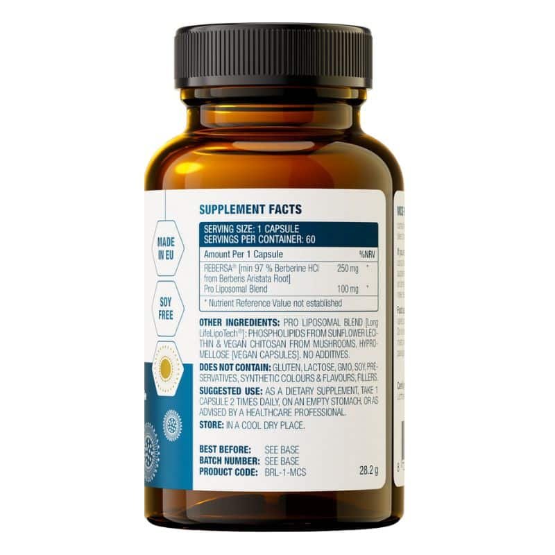 Το Berberine Pro Liposomal είναι ένα συμπλήρωμα διατροφής, του οποίου το κύριο βιοδραστικό συστατικό διαφόρων φυτών όπως το Berberis vulgaris (barberry) και το Berberis Aristata και κοινών παραδοσιακών κινέζικων φαρμακευτικών βοτάνων (ονομάζονται επίσης «Huang Lian» στα κινέζικα) που χρησιμοποιούνται παραδοσιακά για την αντιμετώπιση διαφόρων μεταβολικών και φλεγμονωδών διαταραχών. Προέρχεται από τις ρίζες, τους μίσχους και τον φλοιό διαφόρων φυτών.