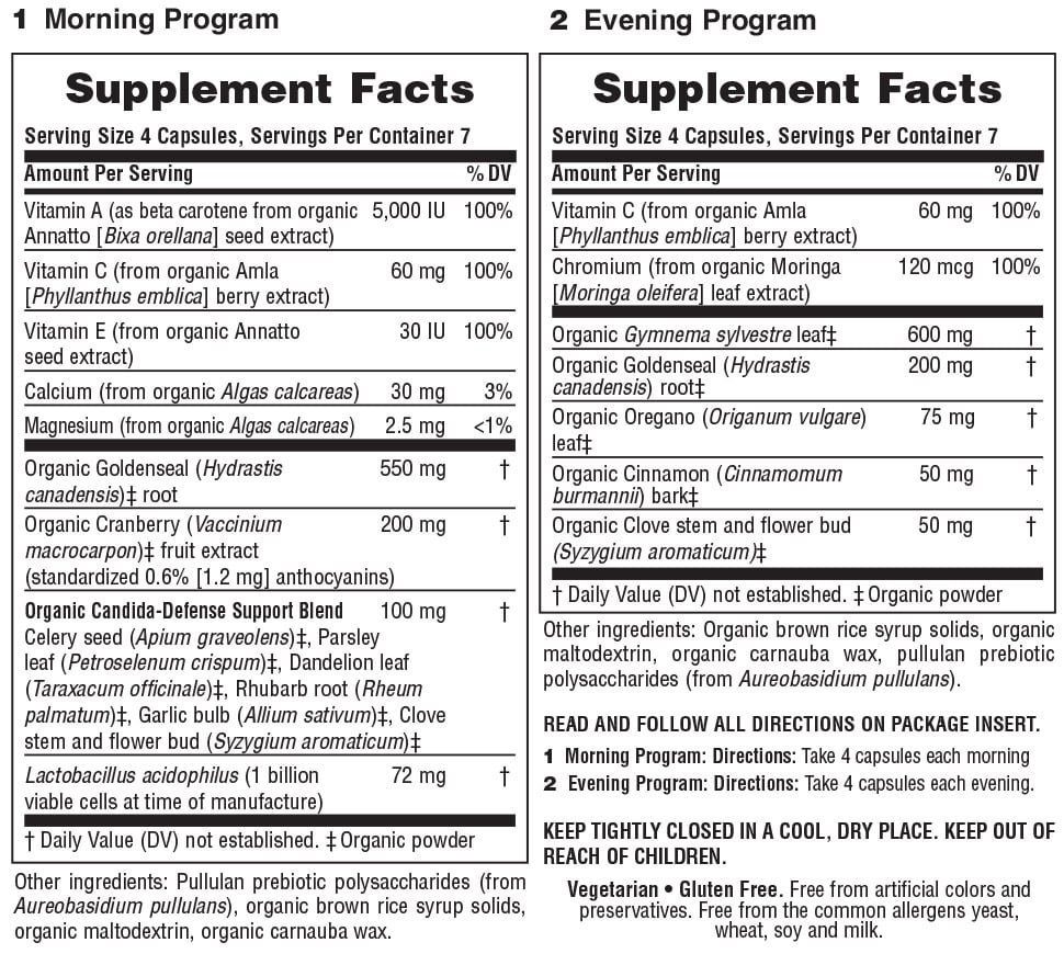 - Organic Candida Defense Support Blend (celery, parsley, dandelion, rhubarb, garlic, clove) 100 mg